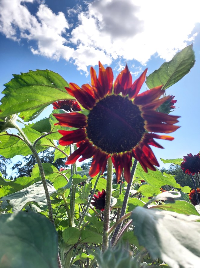 The sunflower blooms at the height of summer. It marks a turning of the season where you can feel the warmth of the sun changing. Mornings are cooler now and require an extra layer of clothing. More orange and burnt sienna hues are noted throughout the landscape. While the daylight has been lessening since the Summer Solstice, you can actually notice how the days are shortened.