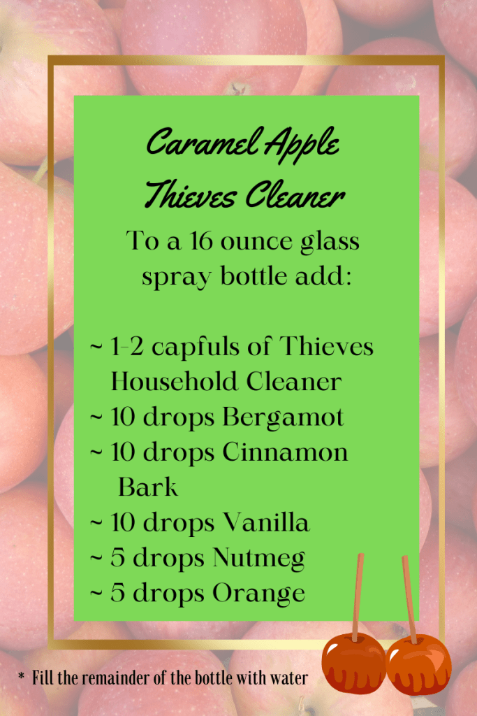 The cleaner contains the popular Thieves essential oil blend which already has a warm, spicy aroma right out of the bottle. But it is always fun to add other essential oils into mix to brighten up your cleaner for those special times of the year!
